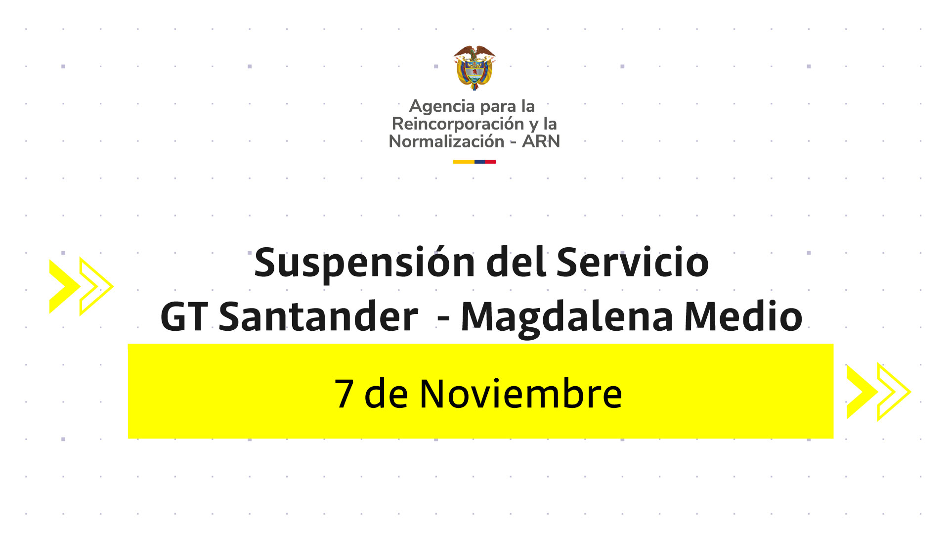 ARN informa a la ciudadanía que el día 07 de noviembre no habrá atención al público en la sede Barrancabermeja ubicada en la Calle 47 N° 16 - 42, Barrio Buenos Aires, teniendo en cuenta la realización de la “Caminata Ecológica” en el marco de las actividades de bienestar de la Entidad.
